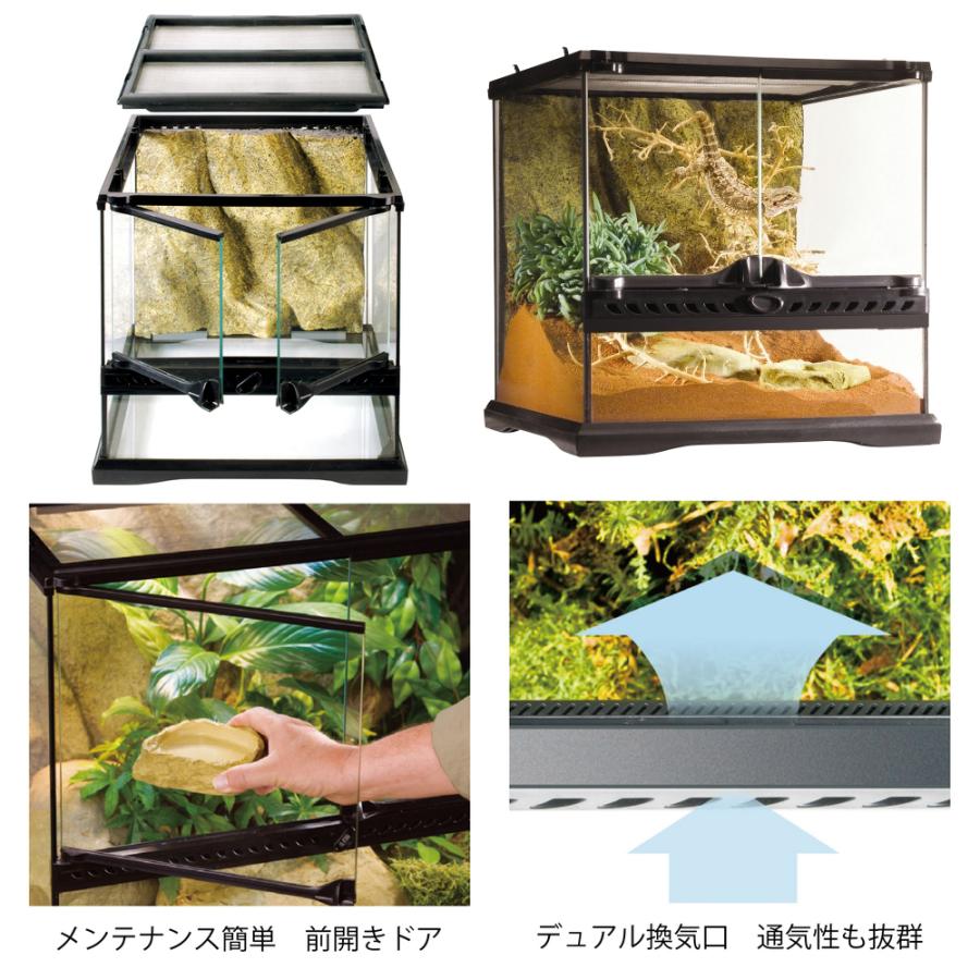 グラステラリウム 3030 クレス-エキゾ テラのグラステラリウム3030 PT2600はヨーロッパ仕様の機能的でデザイン性に優れた爬虫類・両生類飼育用ケージです。 両開きのフロントドアはメンテナンスや給餌が簡単に行えます。 ドアロックノブによりフロントドアはしっかりロックでき、生体が脱走する心配がありません。 トップカバーは通気性のよいメッシュスクリーンです。 後面上部にコード類を設置できるコー ド穴を設けて楽天市場アクアペットサービスの爬虫類用品 > ケージ > グラステラリウム ケージ一覧。楽天市場は、セール商品や送料無料商品など取扱商品数が日本最大級のインターネット通販サイト